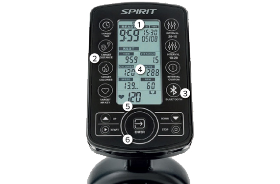 - Czas, dystans, kalorie, waty, prędkość, obroty na minutę